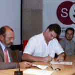 El rector de la Universidad de La Laguna, ángel M. Gutiérrez, y un representante de la Asociación de Usuarios de…