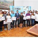 El director del curso, Víctor Manuel Hernández (i) y Carina González, de ULLMEDIA (d) en el acto de entrega de…