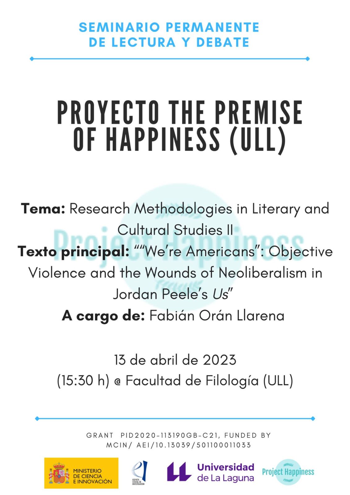 Jueves 16 de febrero de 2023 (17.00 h) @ Facultad de Filología (ULL)