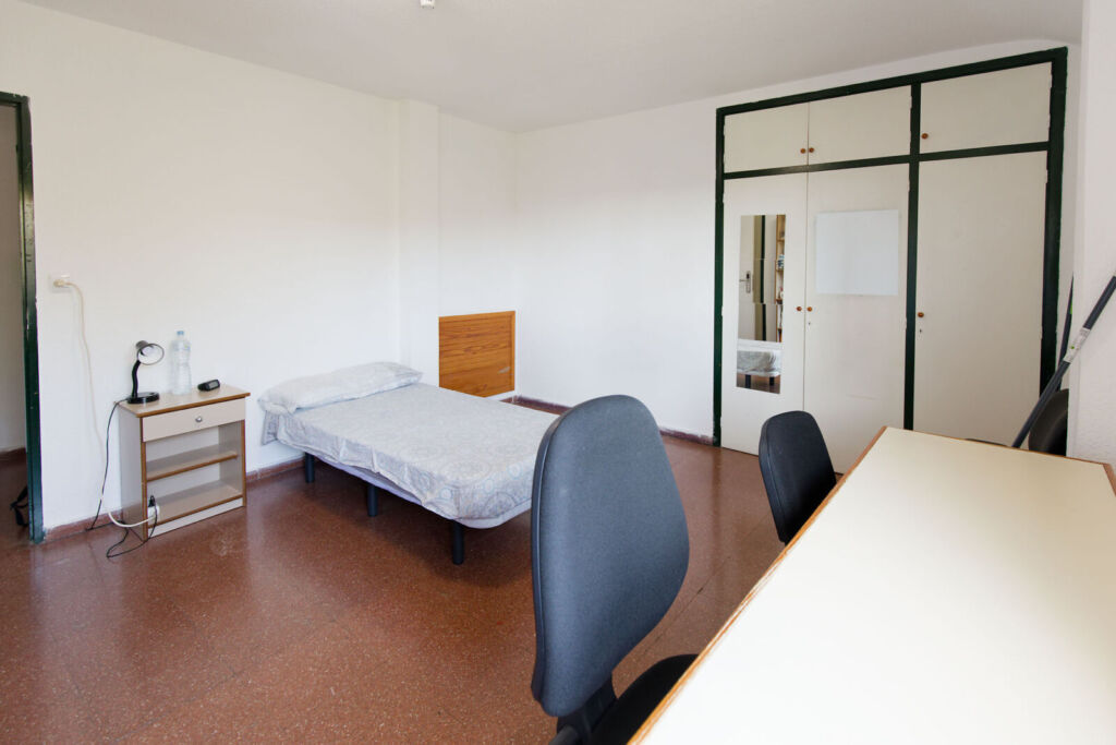 Las habitaciones disponen de cama de 90 cm, mesa de noche, mesa de estudios, sillas, armario, flexo de luz, papelera.