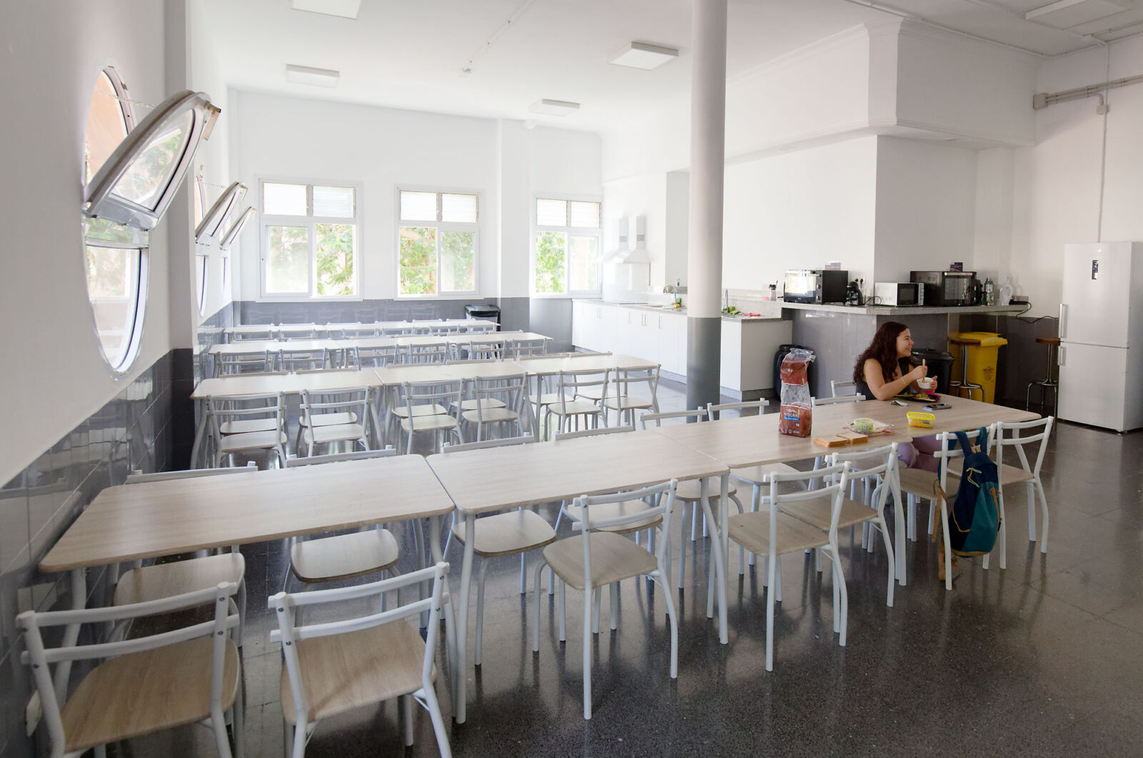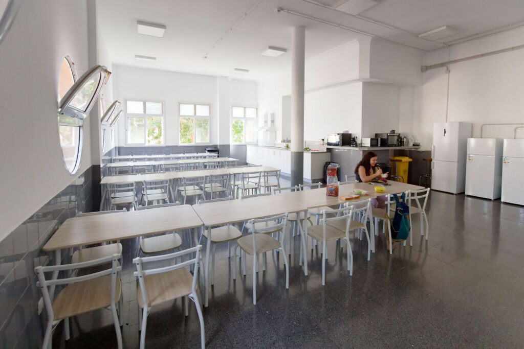 Cada pabellón dispone de una cocina-office, de uso común disponiendo de neveras, congeladores, microondas, cafetera, placa para cocinar y horno. Los enseres de cocina serán por cuenta del estudiante o residente, que los deberá mantener en su habitación. No dispone de servicio de comedor.