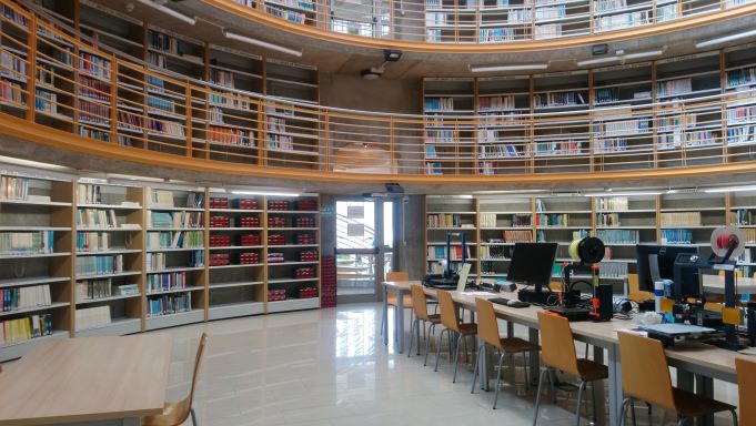 La salle principale comprend 210 postes de lecture et de travail en groupe, ainsi qu'un espace de repos et de détente. Il y a également 6 lieux pour étudier en silence, répartis dans deux cabines ou bureaux, et une salle de projection et de capture de mouvement avec 20 postes de travail.