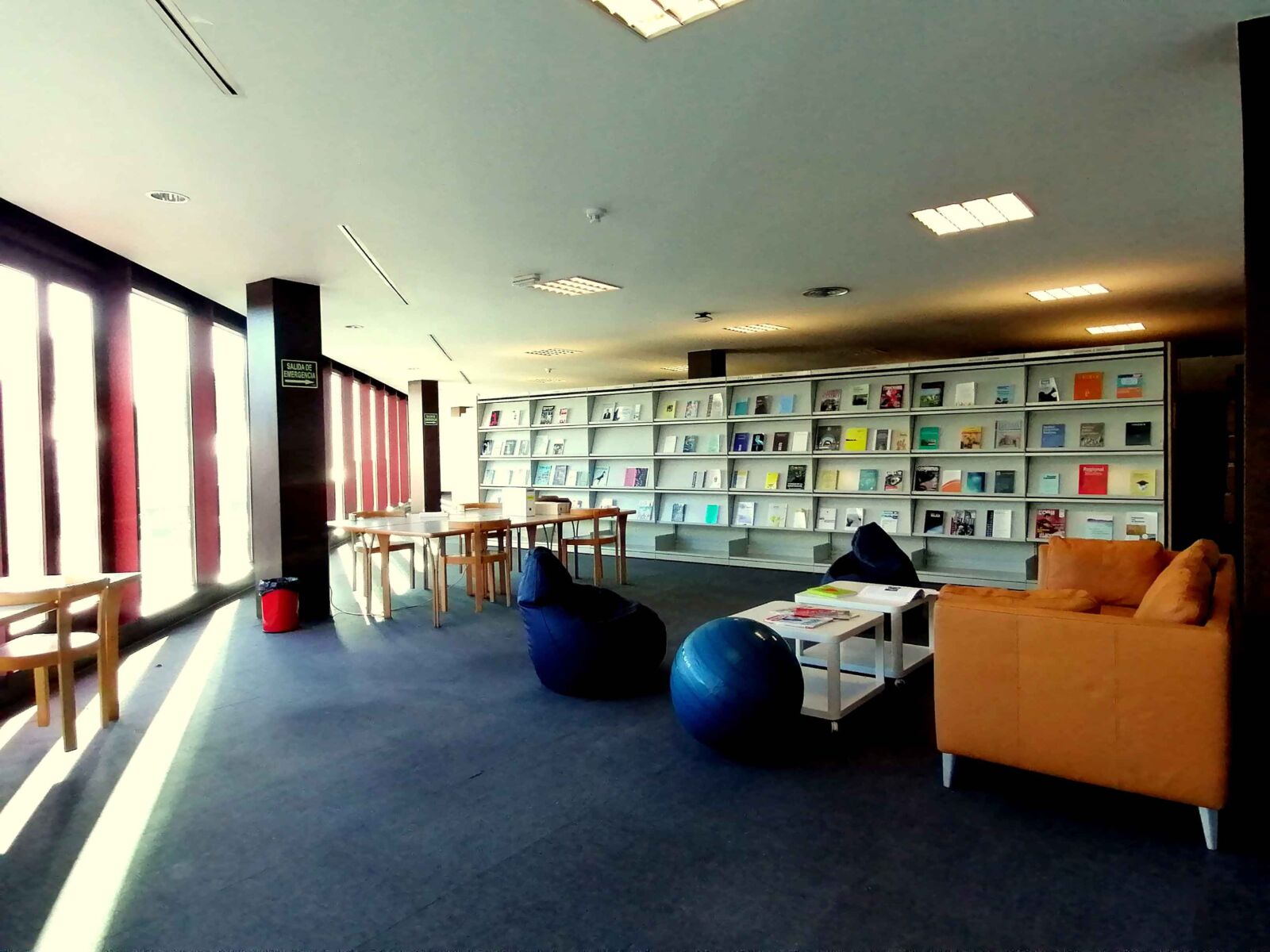 La hemeroteca dispone de 8 puestos de lectura, un área de descanso y un carrel para uso exclusivo de investigadores, que se reserva en línea