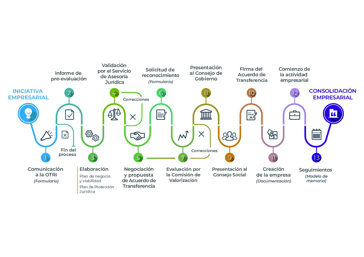 Desde el Área de Creación de Empresas Basadas en el Conocimiento de la Oficina de Transferencia de Conocimiento (OTC) se acompaña y apoya la creación de spin-off, start-up y otras iniciativas emprendedoras de base científica o tecnológica, ofreciendo orientación, asesoramiento y seguimiento a lo largo de todo el proceso.