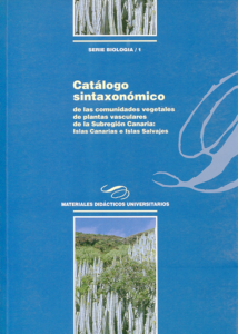 ![]() | Catálogo sintaxonómico de las comunidades vegetales de plantas vasculares de la subregión canaria: Islas Canarias e Islas Salvajes [Acebes Ginovés, J.R.] [Arco Aguilar, Marcelino del] [García Gallo, A.] [Pérez de Paz, Pedro L.] [Rodríguez Delgado, O.] [Wildpret de la Torre, W.] | 1 diciembre, 1998 | ISBN: 9788477564577 |