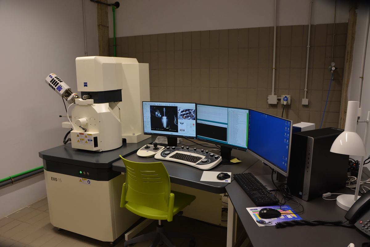 - Microscopio electrónico de barrido (SEM) ZEISS EVO 15 con resolución de 2 nm con microanalizador de energías dispersivas de rayos X (EDX) Oxford X-MAX de 50 mm2. (3)