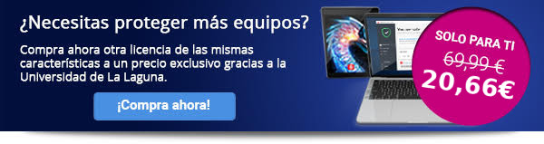 Adicionalmente el alumnado y el resto de colectivos pertenecientes a la comunidad universitaria que dispongan de una dirección de correo institucional (@ull.edu.es) podrán adquirir una licencia de Bitdefender Total Security Multi-Device a un precio reducido aplicando el cupón ULLSECURITY50 en el momento de la compra.