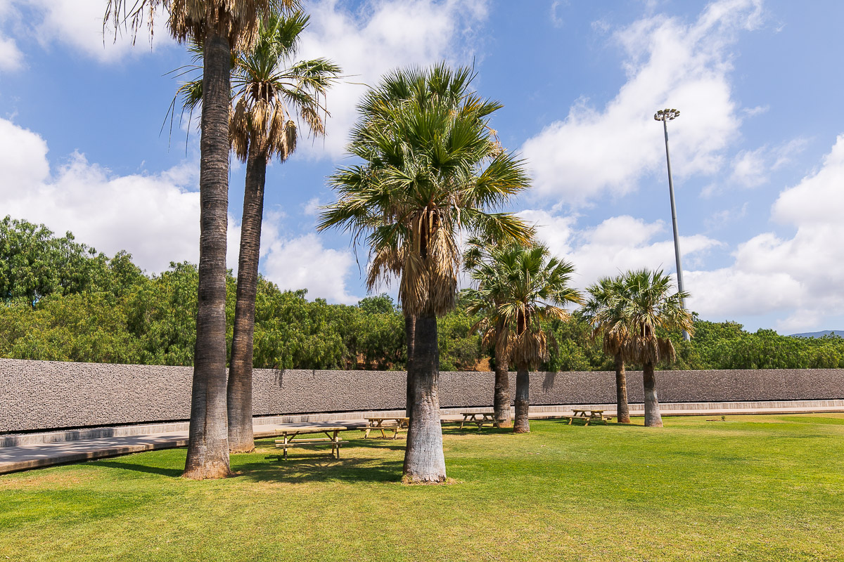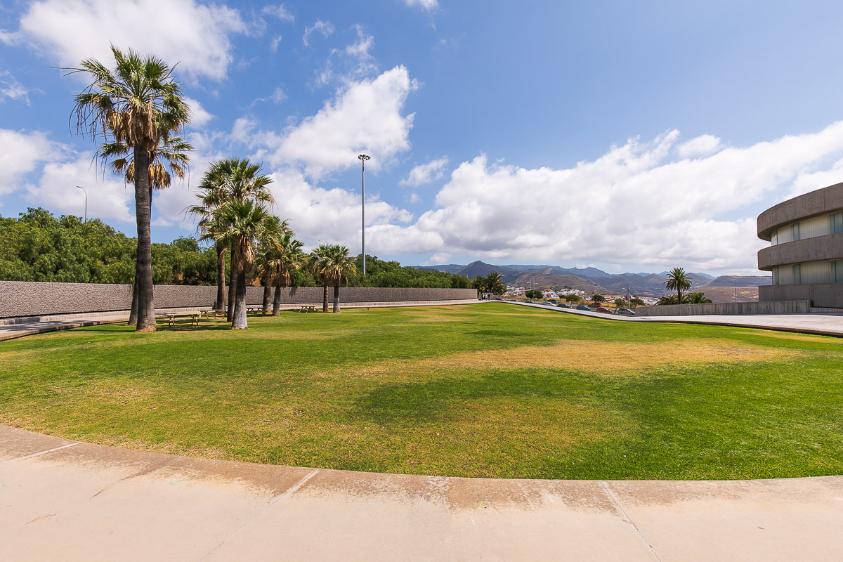 Dispone de franja cubierta al entrar, que abarca desde la conserjería a la sala de estudios.