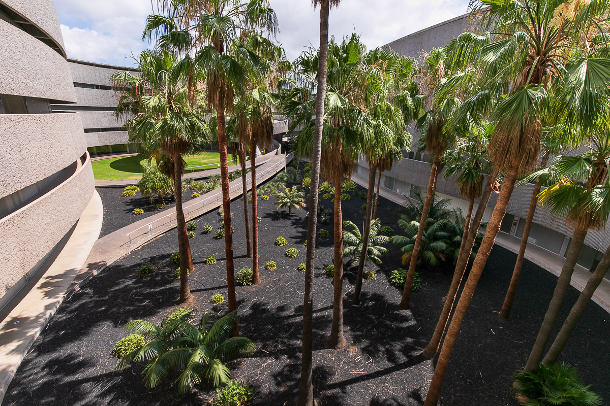 Dispone de franja cubierta al entrar, que abarca desde la conserjería a la sala de estudios.