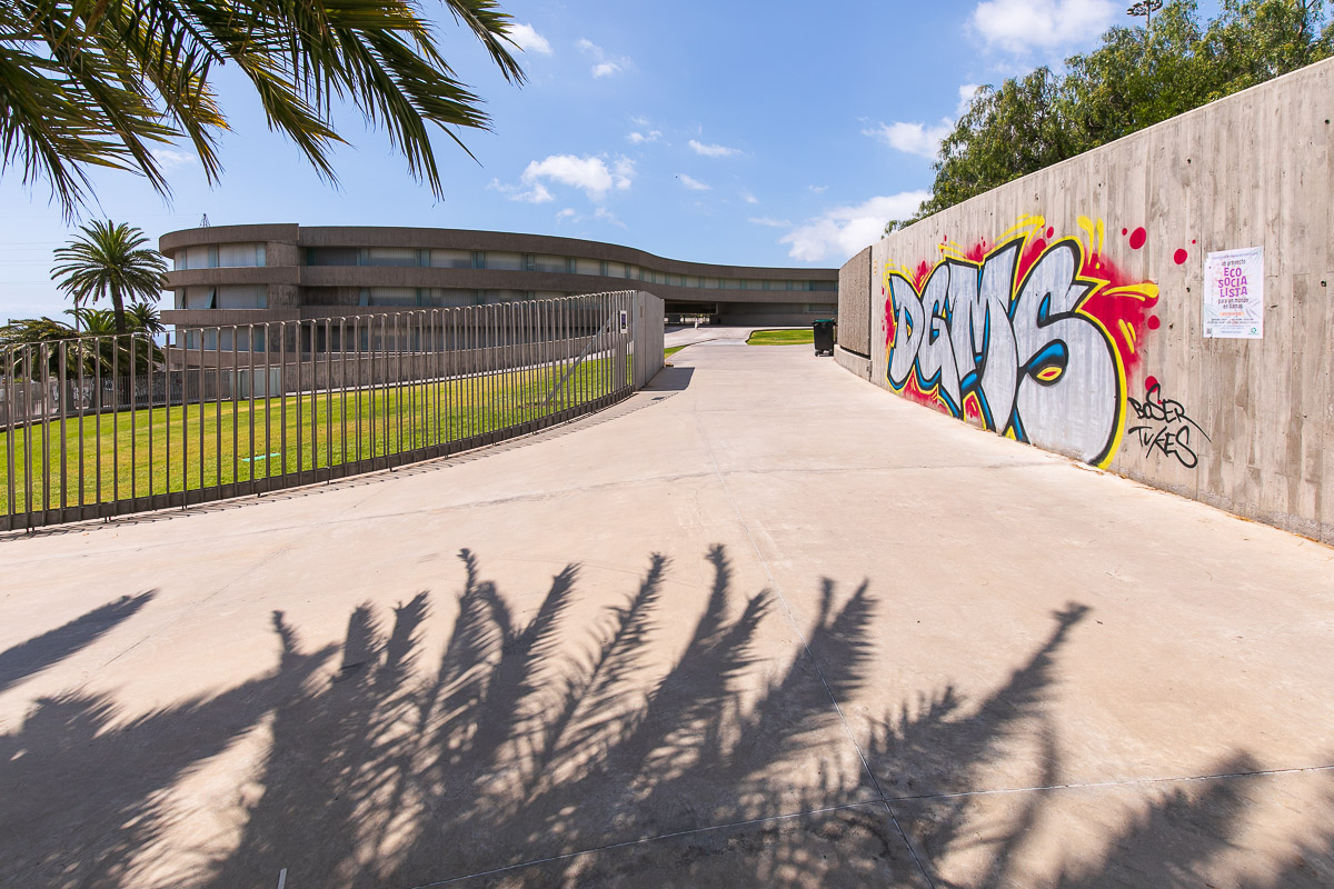 Dispone de franja cubierta al entrar, que abarca desde la conserjería a la sala de estudios.