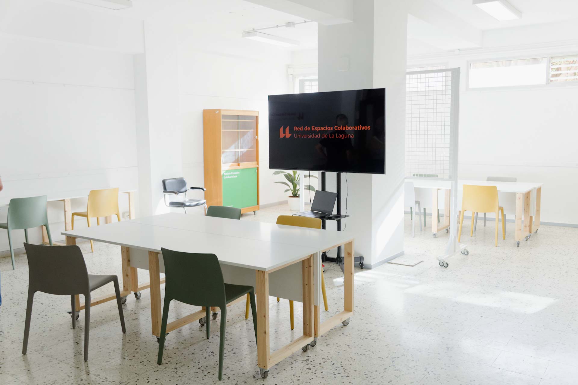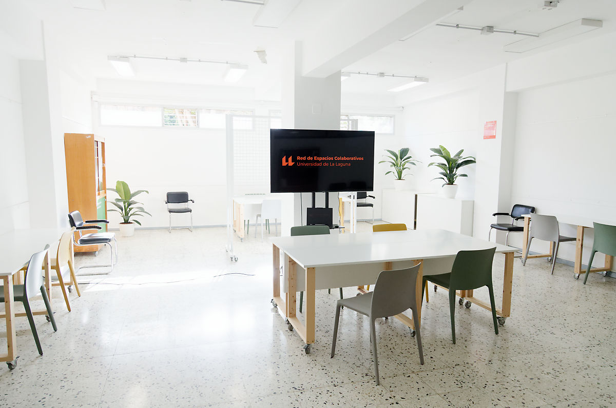 Descripción: Espacio dotado de conexión a internet, 8 mesas de trabajo y 20 sillas que se pueden adaptar a las necesidades de los usuarios. Dispone además de pantalla de proyección.