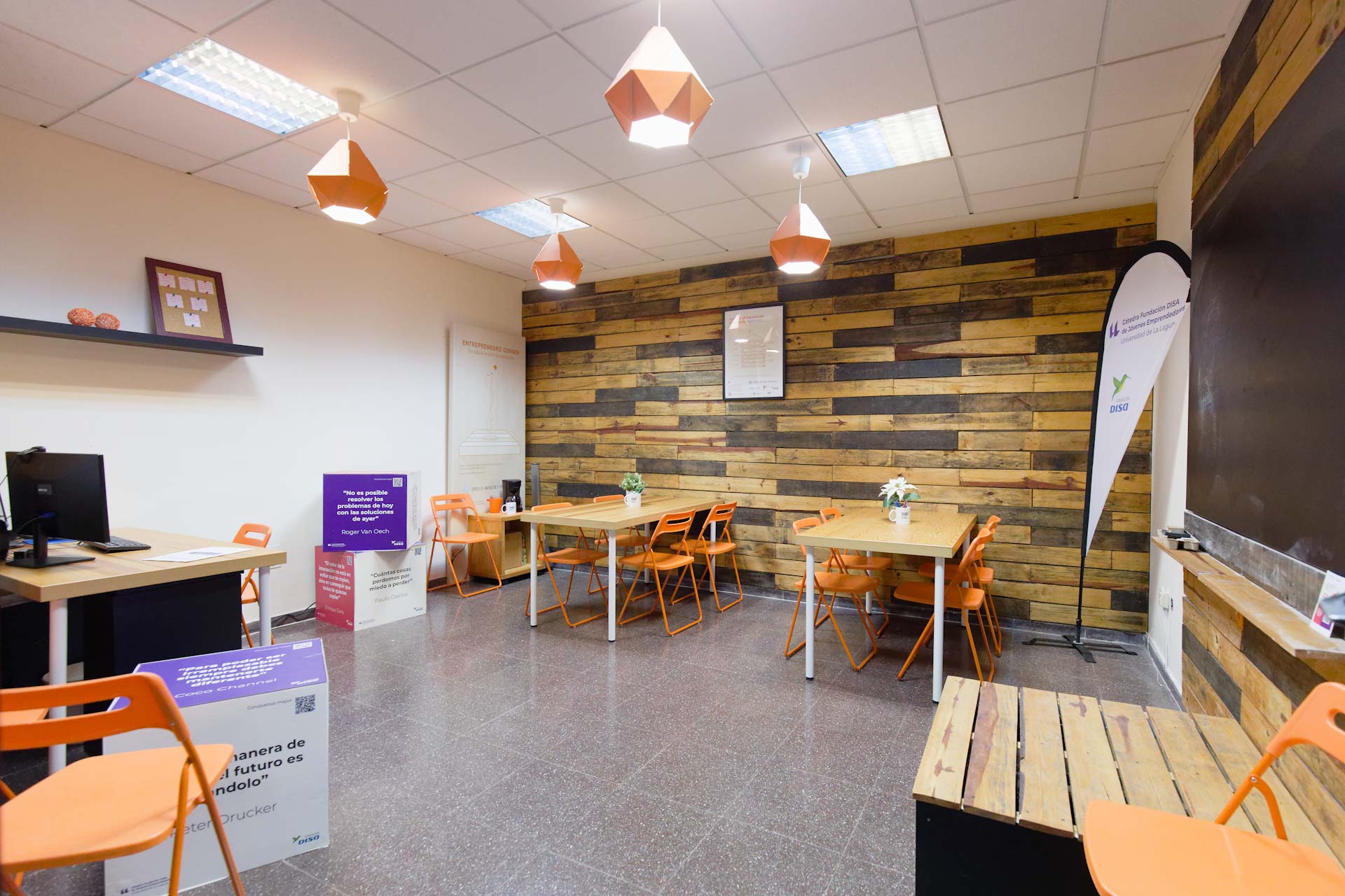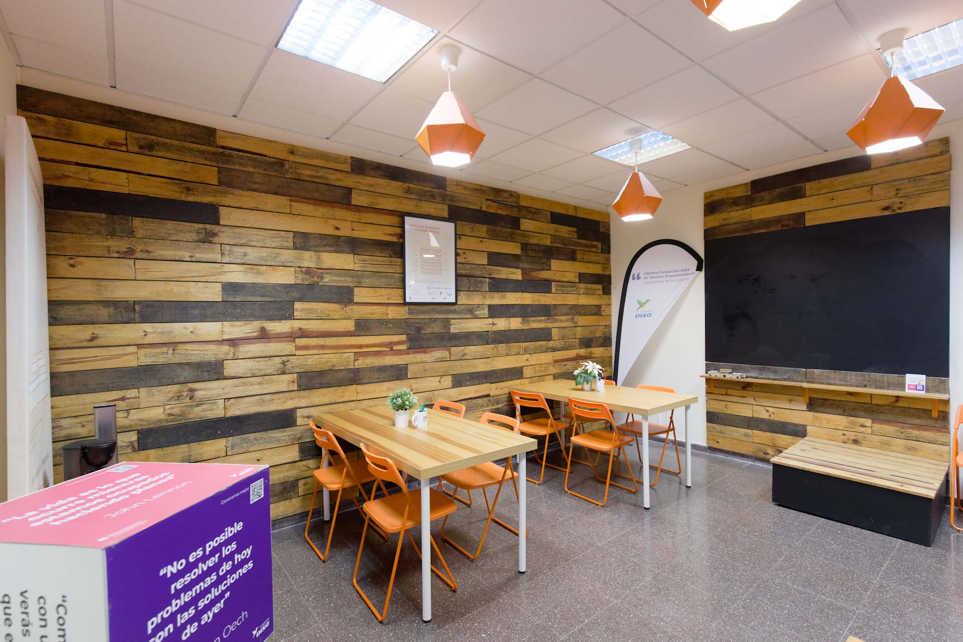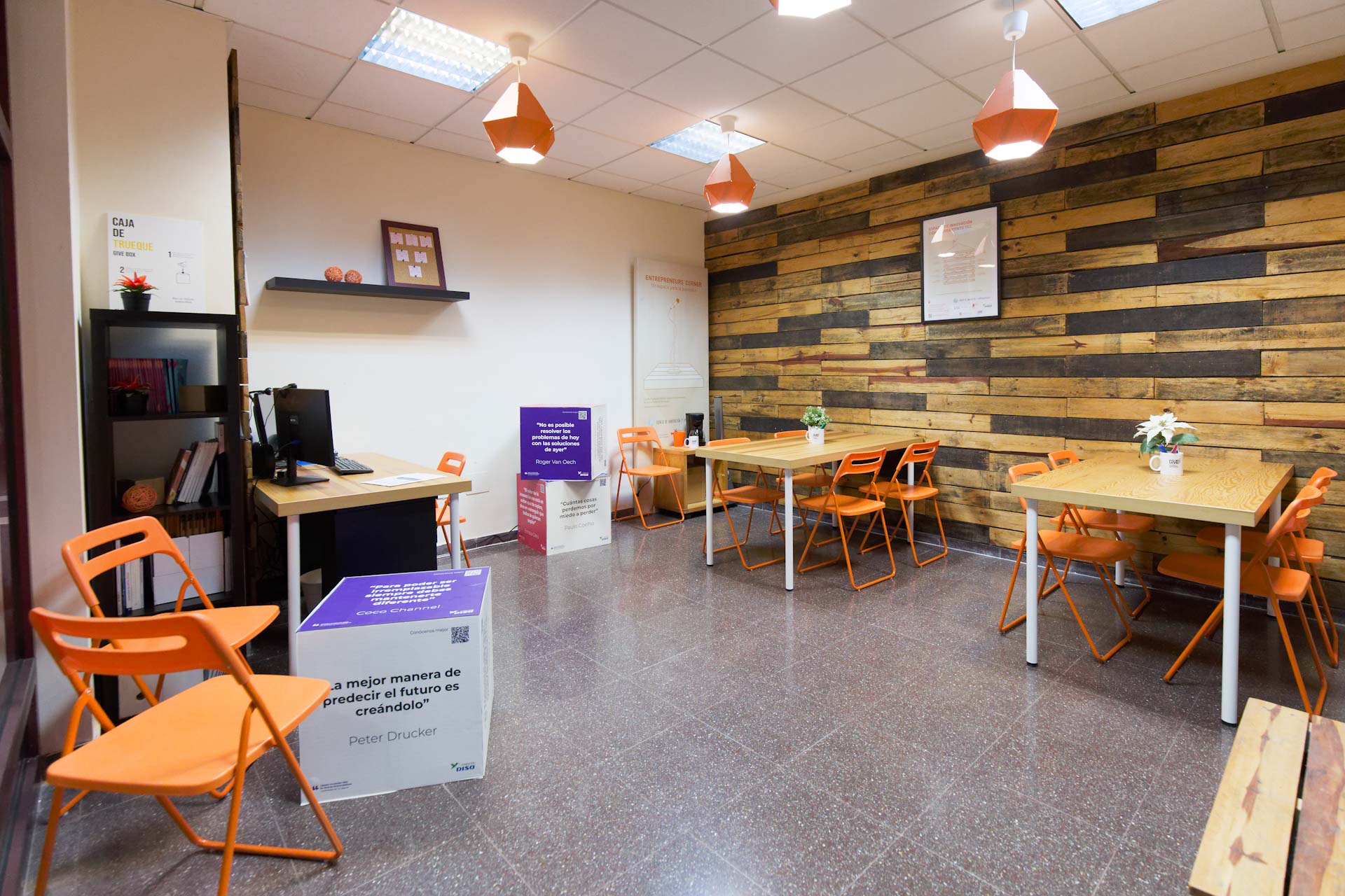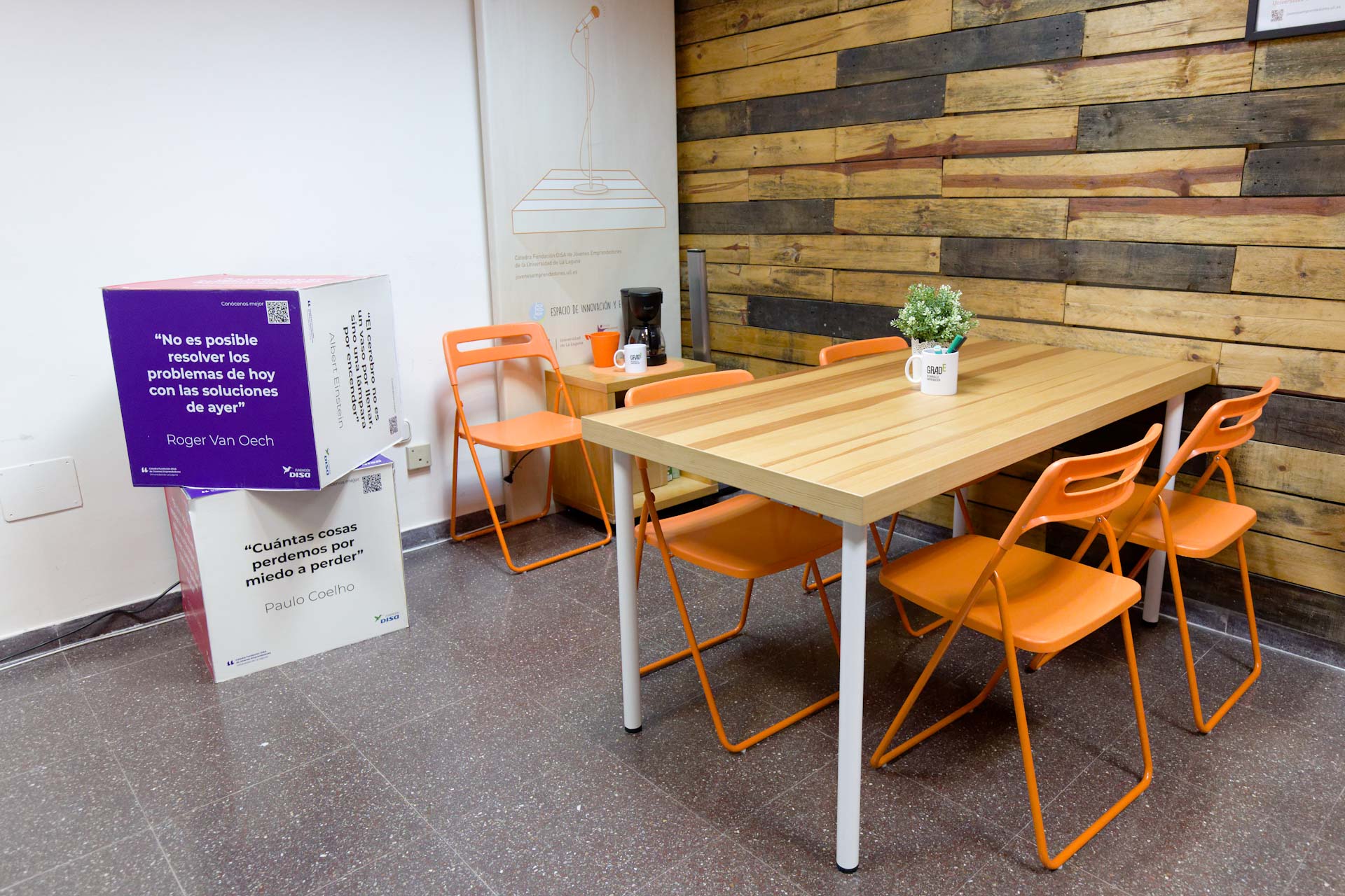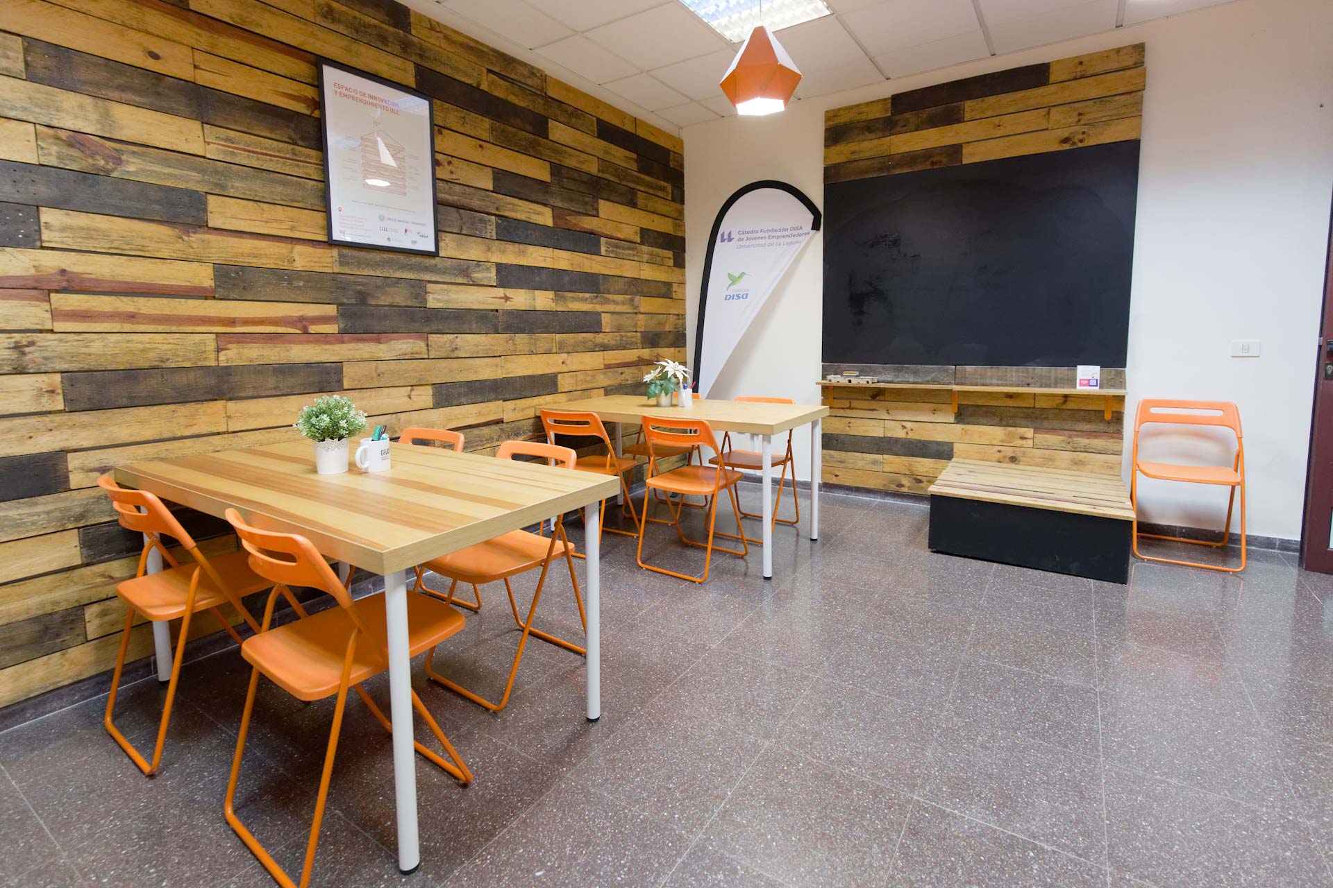 Descripción: Espacio dotado de ordenador fijo con conexión a internet, dos mesas de trabajo y doce sillas que se pueden adaptar a las necesidades de las personas usuarias, además de pizarra de tiza